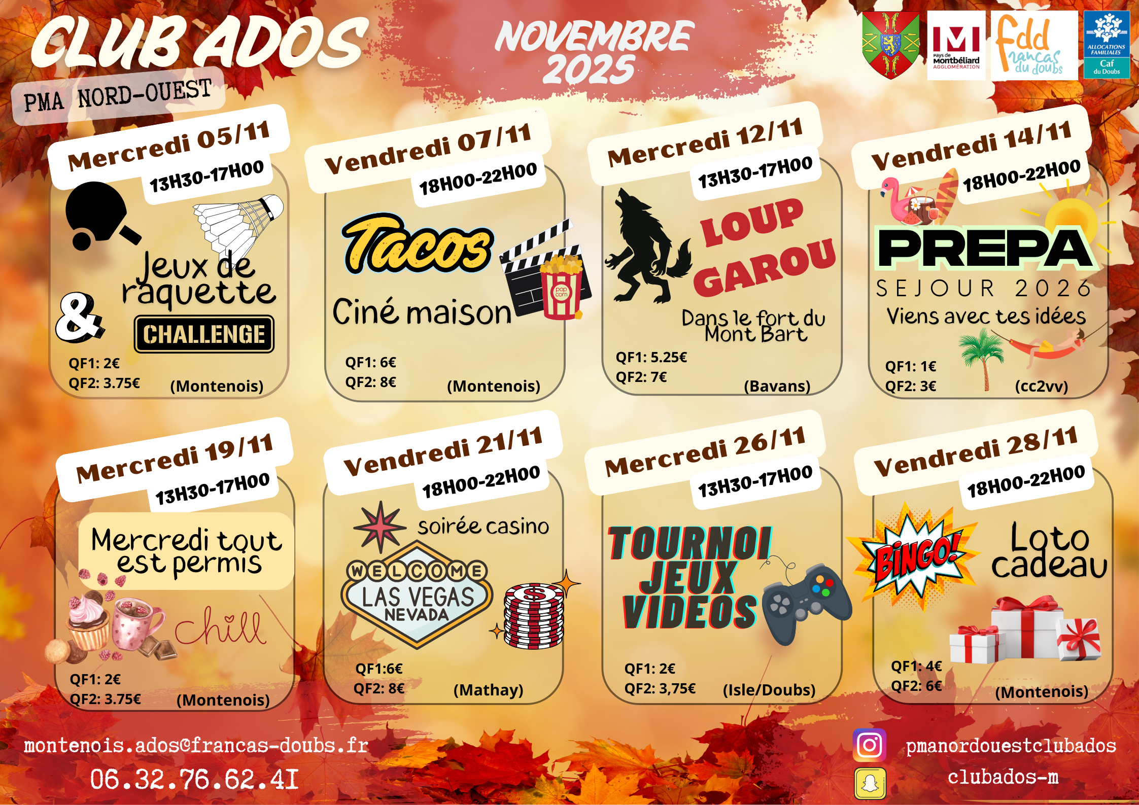 · Les horaires de transport en mini bus devant les différentes mairies seront envoyés par sms la veille de l’activité.